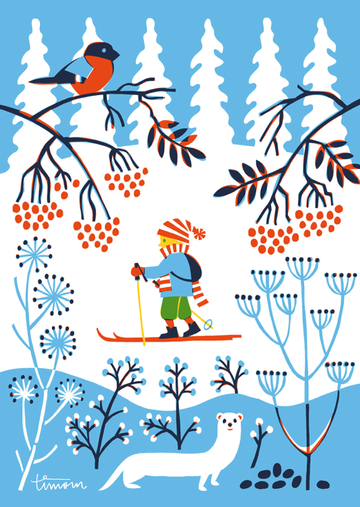 Hanki (Crust of snow) postcard. Illustration by Timo Mänttäri. Kehvola Design Helsinki Finland. Printed in Finland on EU eco labelled paper.
