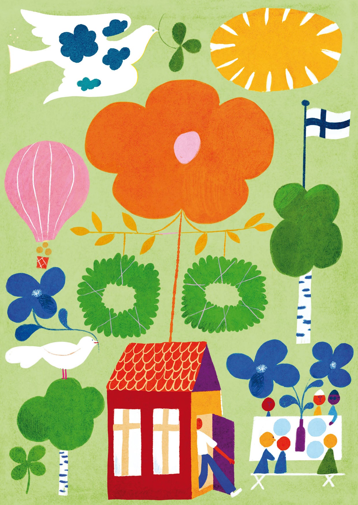 Midsummer postcard. Illustration by Sanna Mander. Kehvola Design Helsinki Finland.