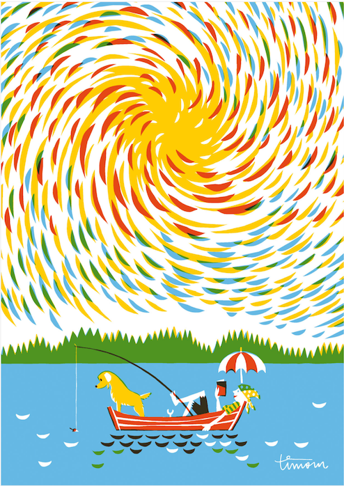 Onki (Fishing Rod) postcard. Illustration by Timo Mänttäri. Kehvola Design Helsinki Finland.