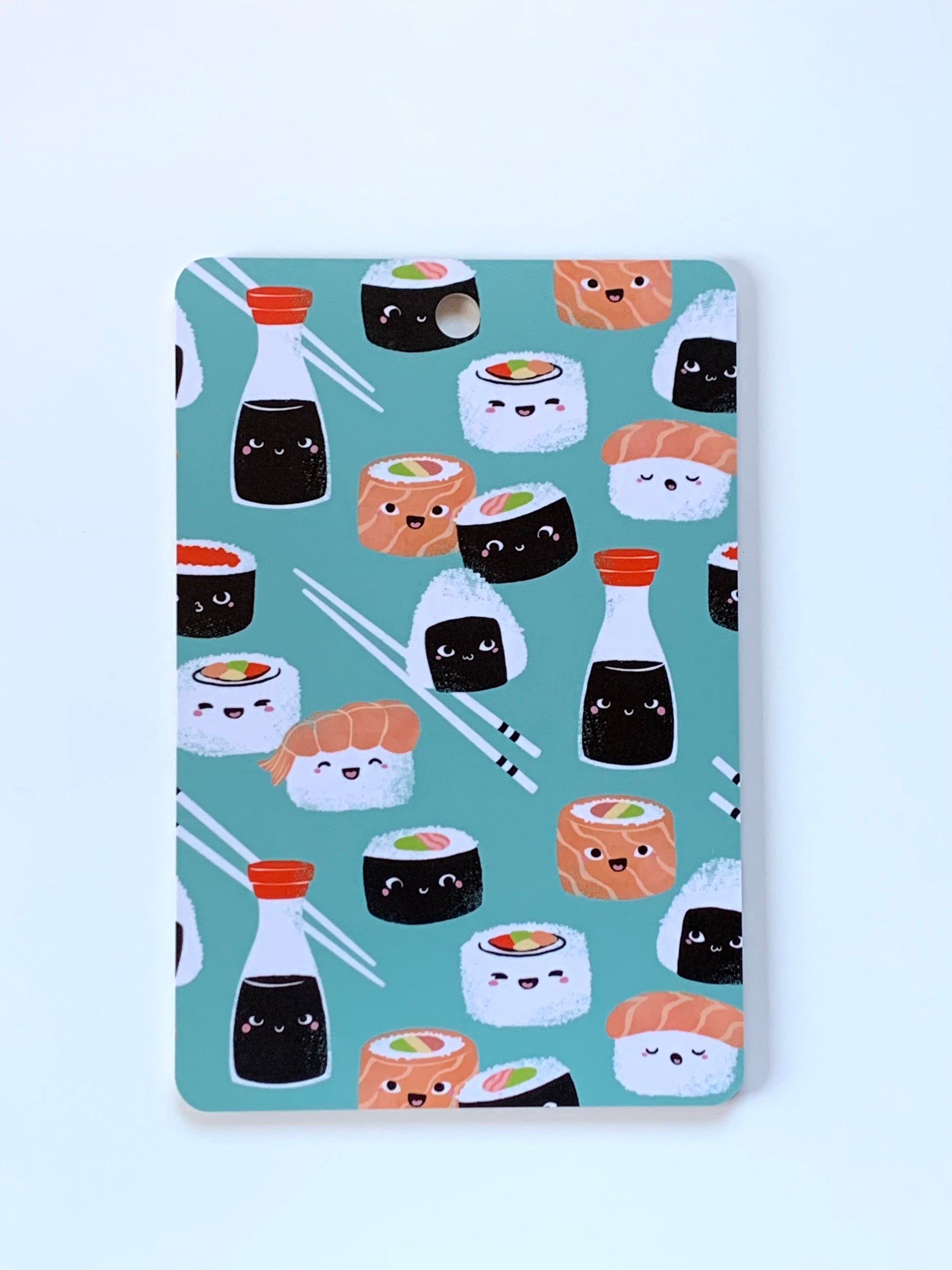 Fun Finnish sushi cutting board made from Finnish birch wood by Mieli Design. Board measures 7.9" x .25" x 11.8". Hand wash in warm water.